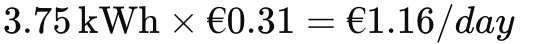 - Annual Savings: €3.31 X 365 = €1,208.15