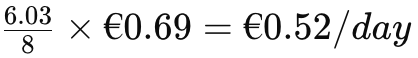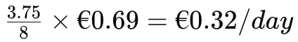 - Total Daily Savings: €1.87 + €0.52 = €2.39/day