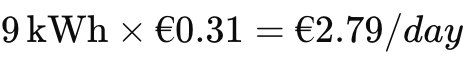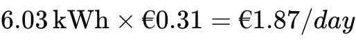 - Annual Savings: €2.39 ×\times× 365 = €872.35