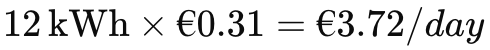 - Total Daily Savings: €3.72 + €0.52 = €4.24/day